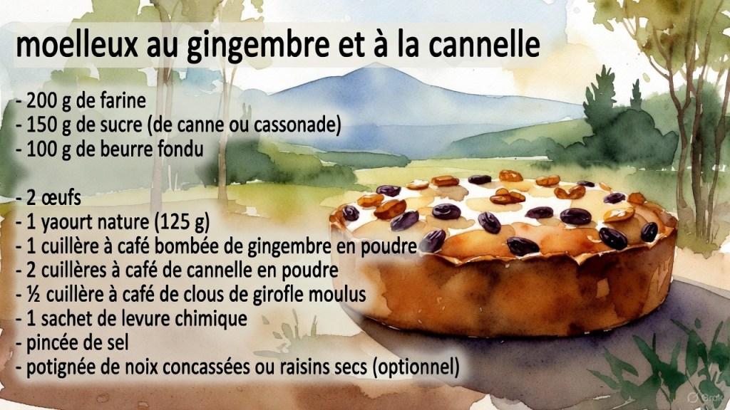 Recette : Gâteau moelleux au gingembre et à la cannelle (pour 8 personnes)