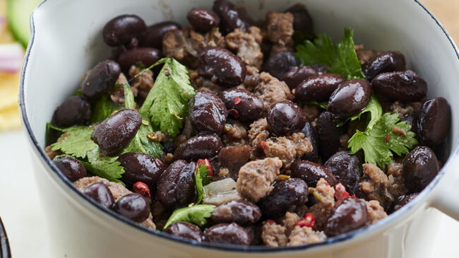 • 150 g de haricots noirs secs (trempés 12 h → ≈ 400 g cuits).